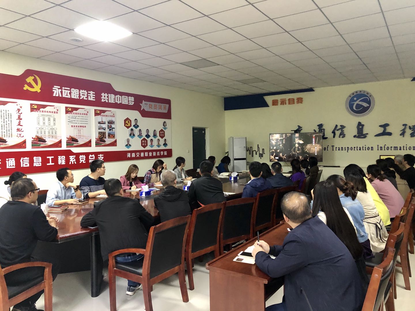 10月9日下午,交通信息工程系党总支在系部二楼会议室开展“不忘初心、牢记使命”主题教育集中学习,会议由系党总支书记李莹主持,全体教职工与部分学生党员参加会议。