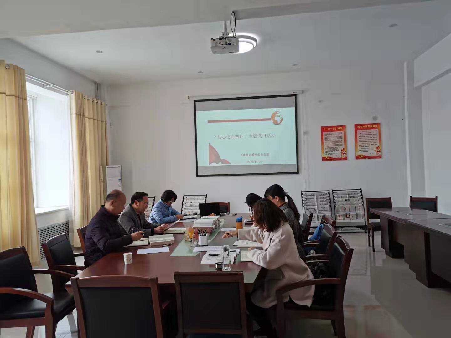 11月20日,公共基础教学部党支部在新校区开展“初心使命四问”主题党日活动。活动由基础教学党总支书记孙红伟主持。