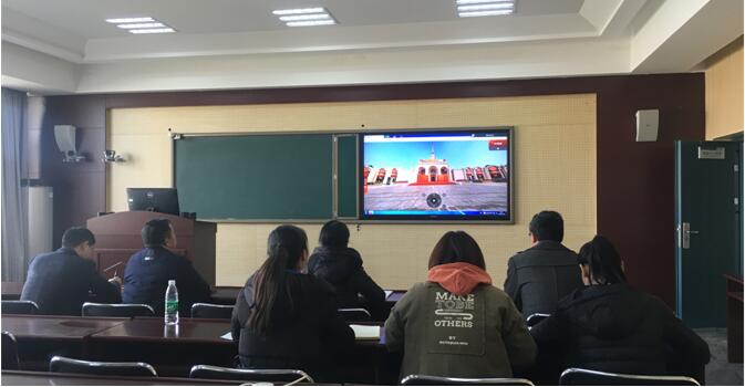 首先,谭萍传达了学院“不忘初心、牢记使命”主题教育领导小组下发的参观网上展馆的通知精神。随后,大家按照新中国成立70年来的时间序列,共同观看了序言、屹立东方、改革开放、走向复兴、人间正道五大部分的发展历程。