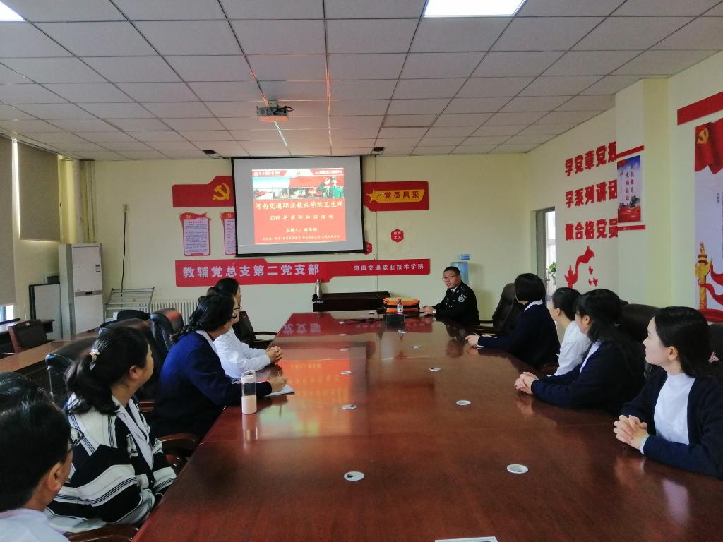 12月11日上午,后勤集团校医院,邀请郑州人人安康社会工作服务中心消防宣传员曲志强,在后勤集团对校医院全体人员开展消防安全知识和技能培训。