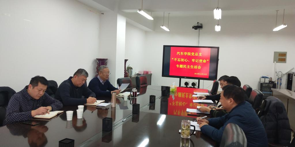 12月13日上午,汽车学院党总支在航海路校区开展“不忘初心、牢记使命”专题民主生活会。学院人事处副处长王世晟代表学院“不忘初心、牢记使命”主题教育领导小组参加会议,汽车学院党总支书记周成林主持会议。