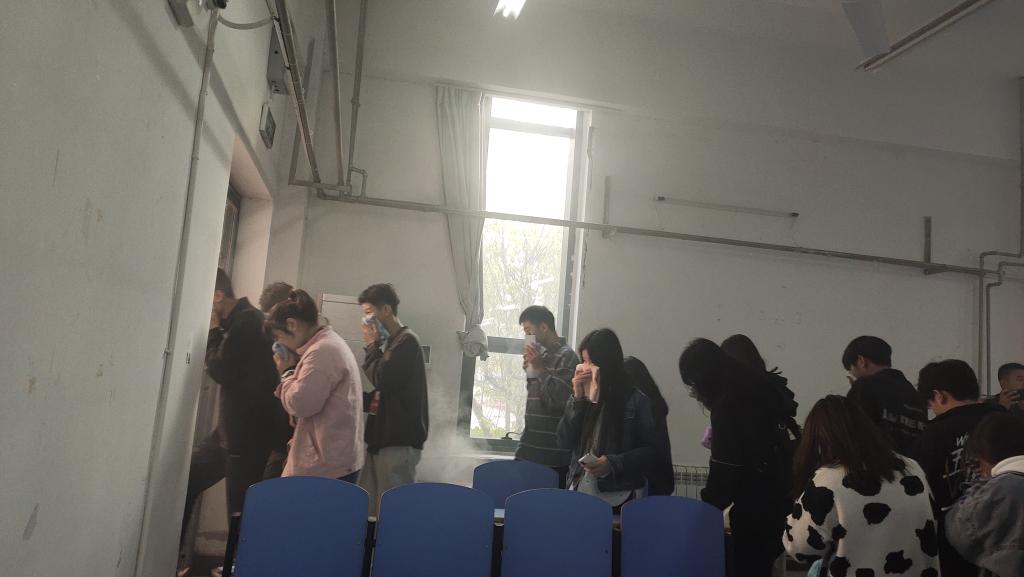 演练开始之前,消防安全协会教员刘永兴为全体师生讲述了灭火器和防烟面具的正确使用方法,并讲述了遭遇火灾时如何折叠湿毛巾,通过PPT和视频的方式讲解了火灾的危害,并指导在火灾现场如何正确逃生。活动最后,组织全体学生开展了火灾逃离演练,同学们用湿毛巾捂住口鼻,依次退场,队伍整齐有序,消防安全演练圆满结束。