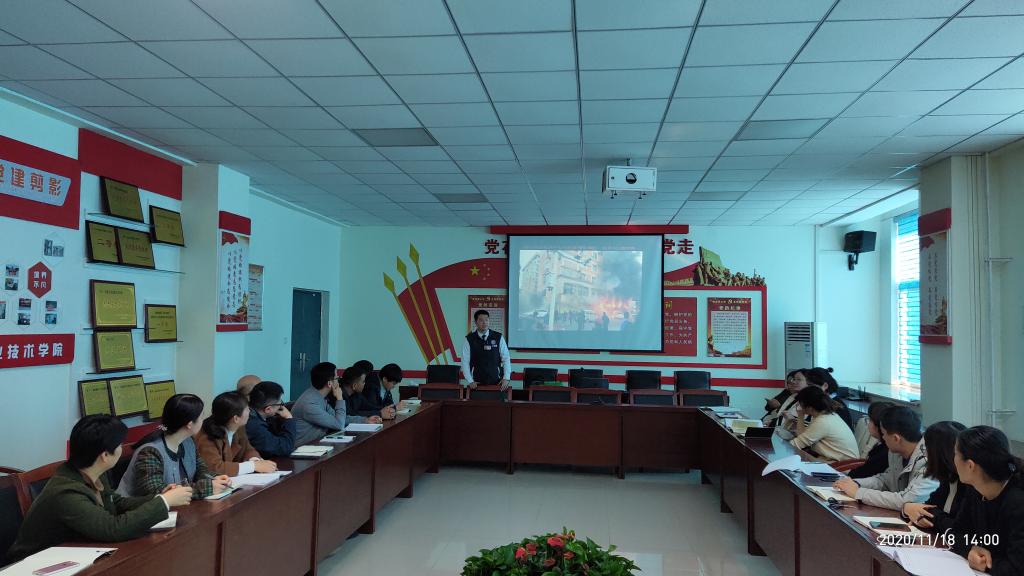 为了增强学生对消防知识的了解,提高广大师生的消防安全理念, 11月18日下午建筑工程系在党员之家举办了消防知识安全讲座。该讲座由河南省消防协会刘永兴教员主讲,本次讲座的主题是:“关注消防,生命至上”,建筑工程系全体教职工及部分学生聆听了此次讲座。
