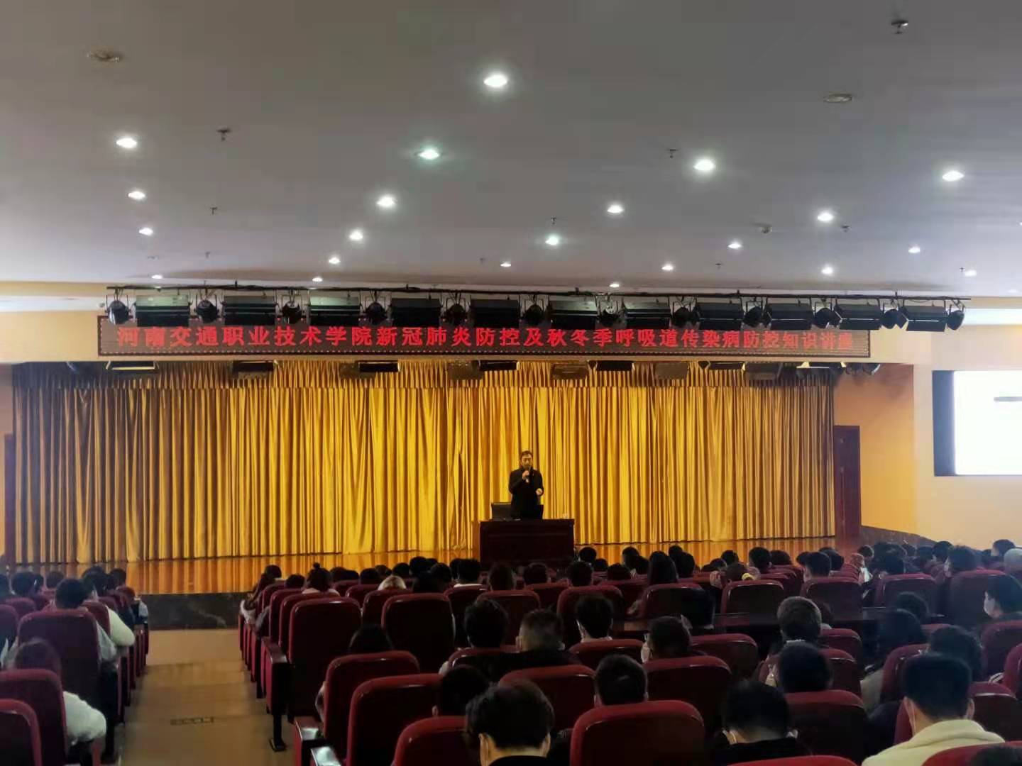 11月25日下午,后勤集团校医院邀请郑州市第五附属医院呼吸科专家刘培杰教授,在新校区图书馆报告厅开展了“新冠肺炎及秋冬季呼吸道传染病”防控知识讲座。学院2020级500余名新生聆听了专家讲座。