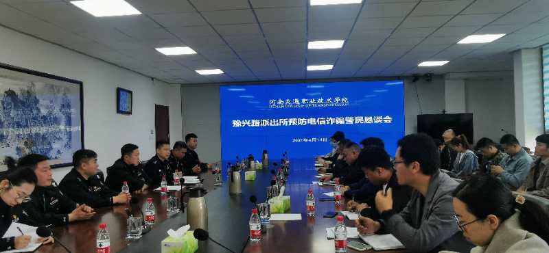4月14日上午,学校在东校区行政办公楼组织召开预防网络诈骗恳谈会。豫兴路派出所副所长汤孝伟及社区民警、学校保卫处及系(院)辅导员和学生代表参加恳谈会。