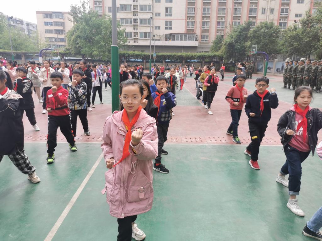 4月22日上午,士官生大队60名士官生应邀参加学校驻地人和路小学师生组织的军事宣传日活动。