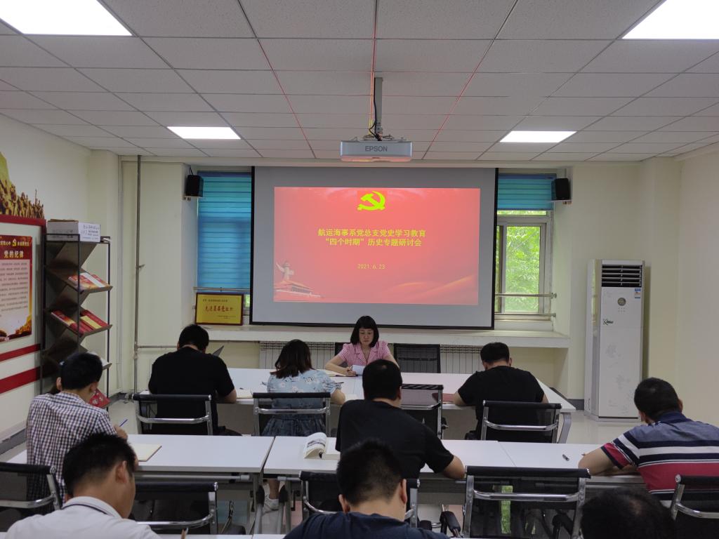 6月24日中午,航运海事系党总支召开党史学习教育“四个时期”历史专题研讨会,会议由党总支书记王寅主持,全体党员参加会议。