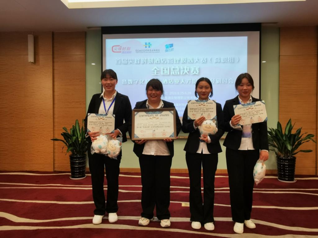 近日,由尖峰时刻组委会、青岛酒店管理职业技术学院、灏悦程信息科技南京有限公司联合主办的首届尖峰时刻酒店管理模拟大赛(高职组)全国总决赛在青岛举行。商务旅游系指导教师孙悦,带领我校2018级酒店管理专业学生秦婷婷、邓瑞杰、秦喜冰、姚雨晴组成吉祥四宝团队参加比赛。