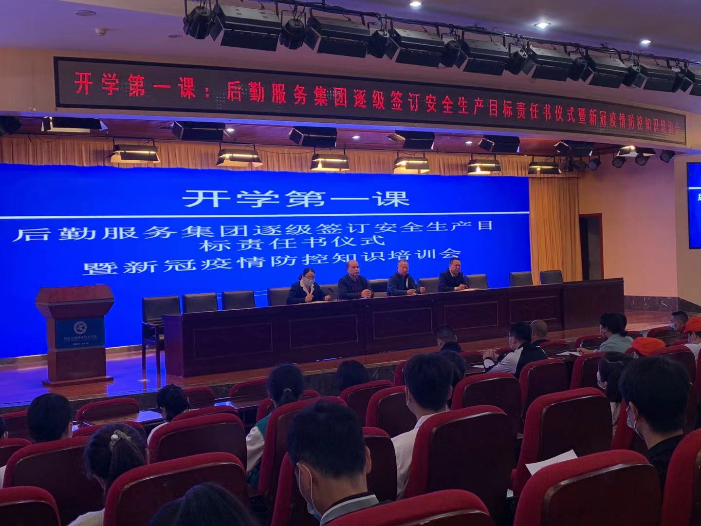 10月8日上午,后勤服务集团在图书馆二楼报告厅召开2021年秋季新学期后勤管理专题会议,与所属单位(部门)逐级签订安全生产目标责任书,召开新冠疫情防控知识培训会。后勤服务集团总经理吴宝全主持会议,后勤服务集团全体教职员工参加会议。