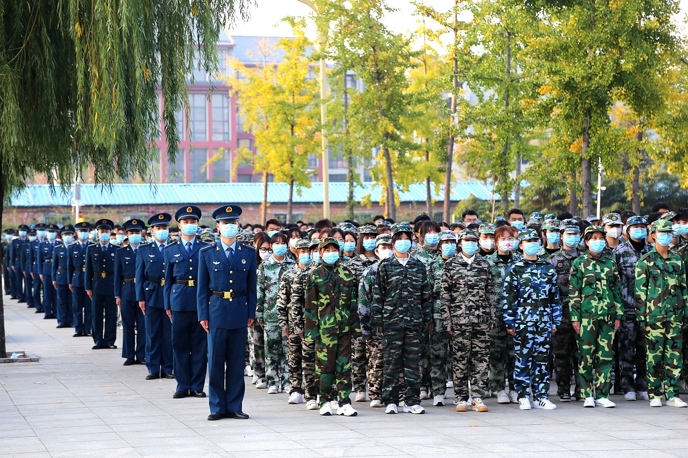 10月14日,学校2021级新生分别在东校区和航海路校区参加军训,全校共有5000余名普通生参加训练。军训教官由我校优秀士官生担任。