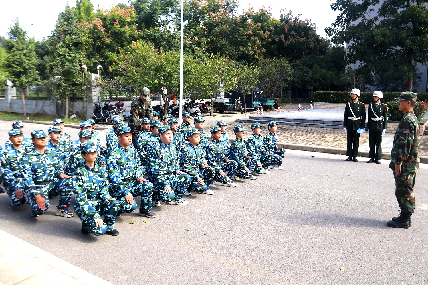 新生报到后,学校开展了集中军政训练。通过训练磨练了意志,培养了严谨的作风,养成了良好的内务卫生习惯。军训结束后,全体参训学生带着饱满的热情和良好的精神风貌开始了校园生活。