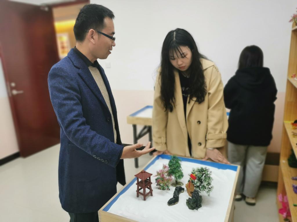 参观活动中,心理健康教育中心老师首先向同学们介绍了心理中心的日常工作以及心理咨询预约的流程和注意事项,随后带领新生们陆续参观了个体咨询室、沙盘室、情绪宣泄室、音乐放松室和团体活动室等多个功能室,并对各功能室的专业设备进行了详细介绍。学生们在参观过程中表现出了极高的热情与兴趣,纷纷踊跃参与,在此探索沙盘游戏的奥秘、体验神经与肌肉的放松,与心理咨询来了一场零距离接触。