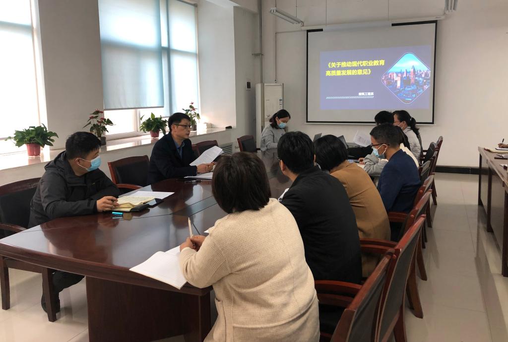11月17日下午,建筑工程系组织全体教师在致用楼会议室学习《关于推动现代职业教育高质量发展的意见》,专题学习会由系主任王永主持。