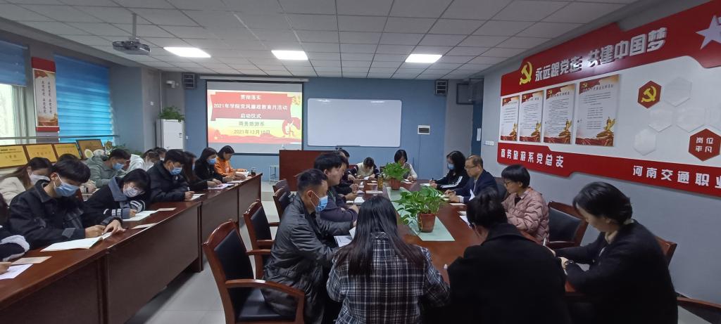 12月10日下午,商务旅游系举行了2021年党风廉政教育月启动仪式。商务旅游系全体教师及部分学生党员参加仪式。仪式由系主任陈振锋主持。