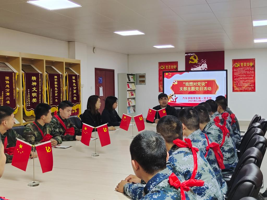 为进一步激励支部党员学党史、感党恩、强党性、跟党走的理想信念,汽车学院学生第一党支部12月21日开展了主题突出、饱俱仪式感的“我想对党说”支部主题党日活动,汽车学院党总支书记轩照振、汽车学院学生第一党支部书记胡训华以及支部全体党员参加了此次活动,会议由胡训华同志主持。