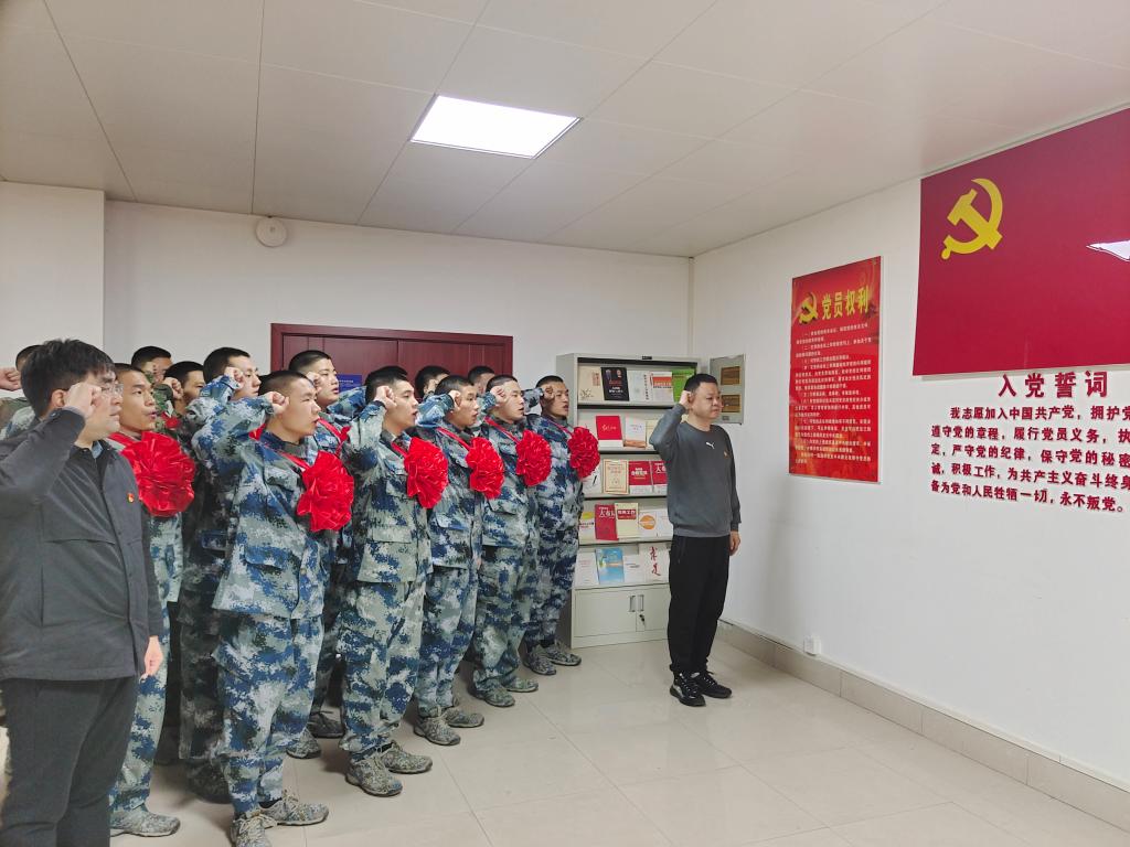 随后胡训华带领全体支部党员在党旗下庄严宣誓,重温入党初心,坚定理想信念。士官生党员们纷纷表示:通过此次活动,他们要将初心和使命转化成履职尽责、锐意进取的强大动力,在部队发展的新征程中贡献先锋力量,立志用实际行动为母校增辉添彩。