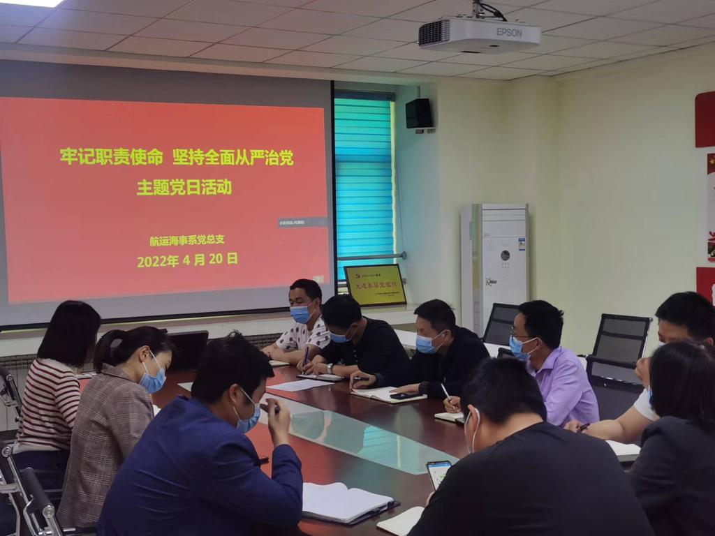 4月20日下午,航运海事系召开“牢记职责使命、坚持全面从严治党”主题党日活动,全体教工党员参加活动,活动由党总支书记王寅主持。
