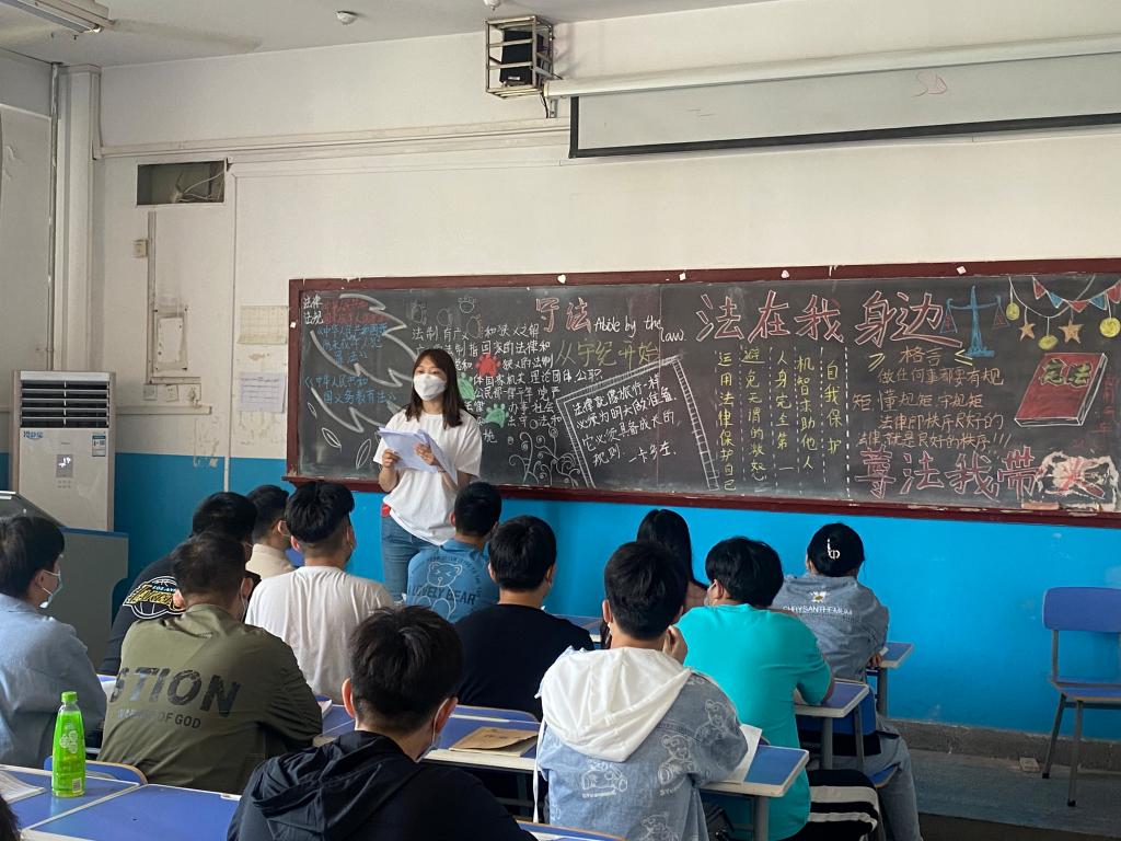 4月20日下午,各班开展法治知识宣传板报展览,围绕国家安全、消防安全、人身安全、疫情防控等开展专题宣传教育,教育引导各班学生人人知法、人人守法,切实提升了学生的法治意识和法治素养。辅导员组织召开了“法在我身边,尊法我带头”法治班会,传达了《关于法治教育宣传周活动的通知》精神,并在此基础上开展了以校规校纪章程为核心的校内规章制度教育,对疫情防控、校园安全等方面的规章制度进行重点宣讲,教育引导学生自觉遵章守纪,形成知法懂法的良好氛围。