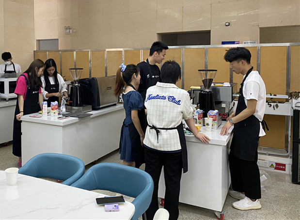 活动开展前,临时接到校医院通知,来校核酸检测医务工作者需要在社团活动场地——咖啡实训基地短暂用餐。得知这一消息后,摩卡咖啡社改变原定活动计划,主动开展社会服务,为守护我们的“大白”提供舒适的就餐环境与美味可口的饮品。社团师生立即分工合作,打扫实训基地,布置桌椅,充分利用商务旅游系专业特色为医务工作者营造了温馨干净的就餐环境;饮品组成员制作咖啡、茶饮,为奋战在一线的医务工作者送上暖心咖啡,受到医务工作者的高度赞扬,展示了省级文明校园的形象。