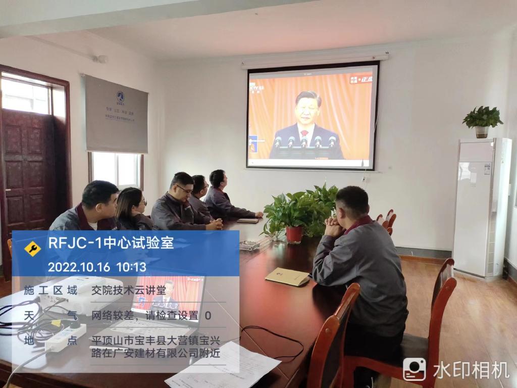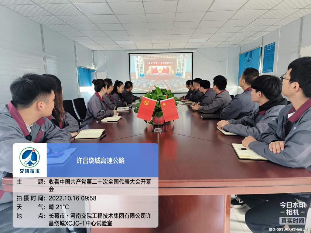 中国共产党第二十次全国代表大会16日上午在北京人民大会堂开幕。习近平总书记代表第十九届中央委员会向大会作报告。交院技术集团党总支积极响应河南省交通运输厅党组及河南交通职业技术学院党委精神号召,组织集团本部工作人员在第一会议室集中观看现场直播,各项目、分公司自行组织观看。