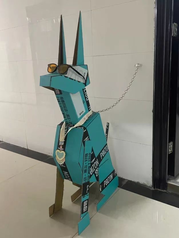 同学们脑洞大开、奇思妙想,利用废旧纸盒制作精美的手工艺品。其中,气质独特的纸箱“小狗”格外火热,或搞笑,或可爱,或威风凛凛,形态各异。此外,中国龙、插花等一系列由同学们精心打造的纸盒工艺品也被带到活动现场,造型别致,引得同学们纷纷驻足观赏。