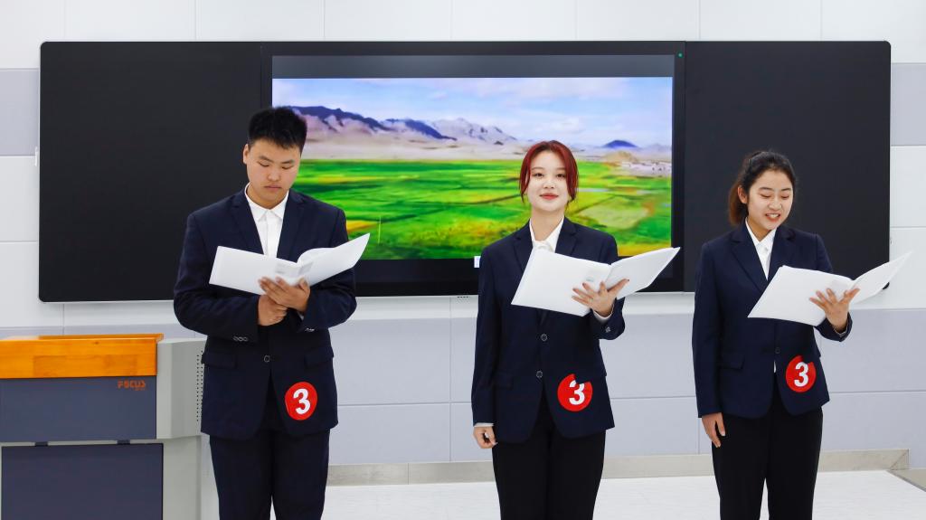 3月22日下午,第二届“树人”马克思主义经典朗读会活动总决赛在学校智慧教室举行。本届马克思主义经典朗读会以“红心向党,喜迎二十大”为主题,由马克思主义学院主办,特邀5位副高级职称教师担任评委,全体在校生和思政课专兼职教师参加活动。