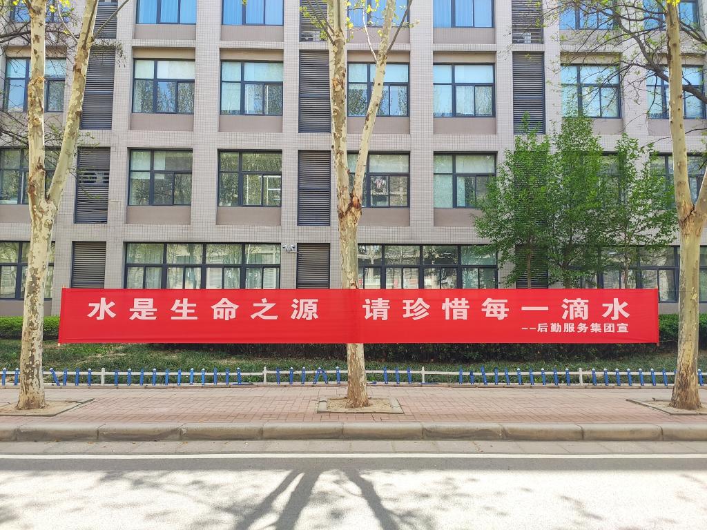 活动中,后勤服务集团通过标语宣传的方式,向广大师生发出倡议——重视水资源保护,增强水资源节约意识,使大家从日常生活的点滴做起,养成良好的用水习惯,提高水资源的利用效率,持续创建节水型校园。