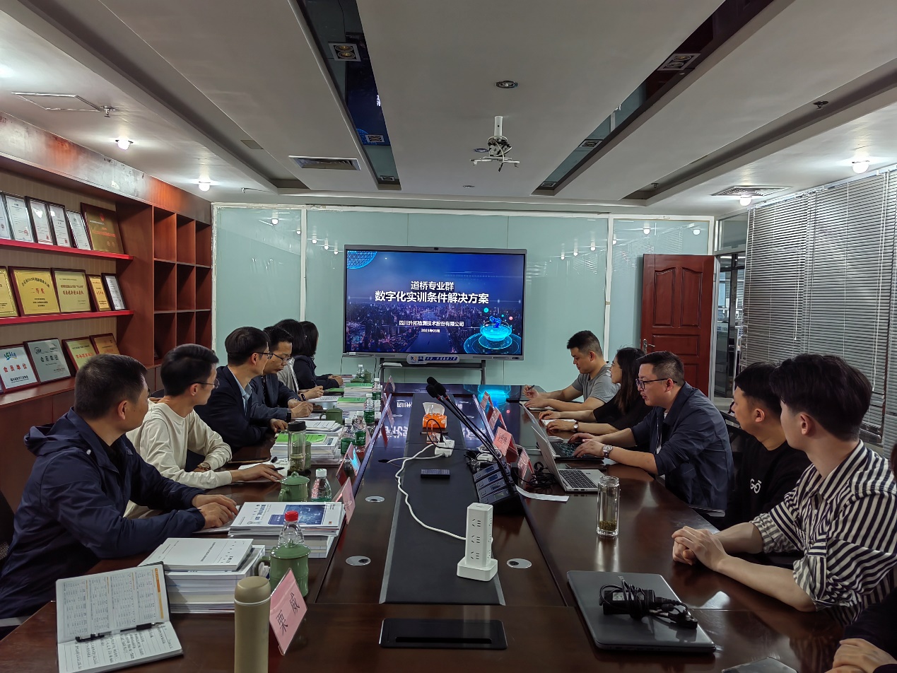 四川交通职业技术学院道路与桥梁工程系主任阮志刚对考察团的来访表示热烈欢迎。双方结合“十四五”职业教育发展规划,围绕“学院的专业群建设、专业课程设置、实训基地建设、教师教学能力大赛、职业技能培训”等方面的经验进行分享和交流。会后,王永一行参观了实训场地,针对现实与虚拟相融合的数字化实训基地建设等进行了深入探讨。