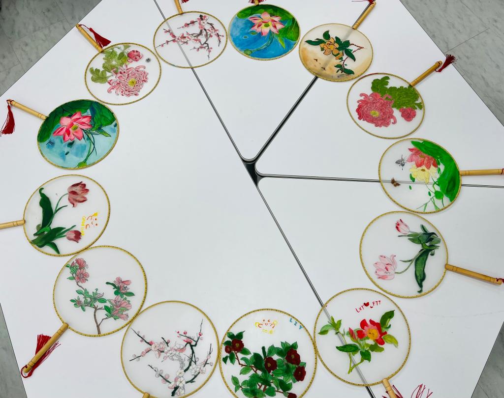 在手绘活动中,同学们发挥天马行空的想象,用心涂抹色彩,将身心完全放松,全心投入手绘中,用心雕琢自己的作品,挑一把扇子,配几种颜色,勾勒心中畅想,不仅让色彩与扇面交融晕染,还给平淡的生活添了一抹色彩。