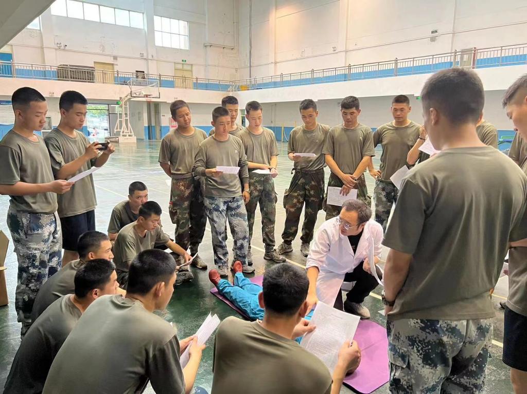 为做好培训工作,校医院制定急救培训方案,选派经验丰富的医护人员开展急救知识培训。培训中,校医院医护人员重点为教官们讲解心肺复苏术、气道异物梗阻解除术、中暑等急救理论知识,并耐心细致地对急救技能操作进行现场指导和示范。参训教官按照医护人员的要求对急救技能操作进行了认真练习。最后组织对教官理论知识和技能操作进行了考核。