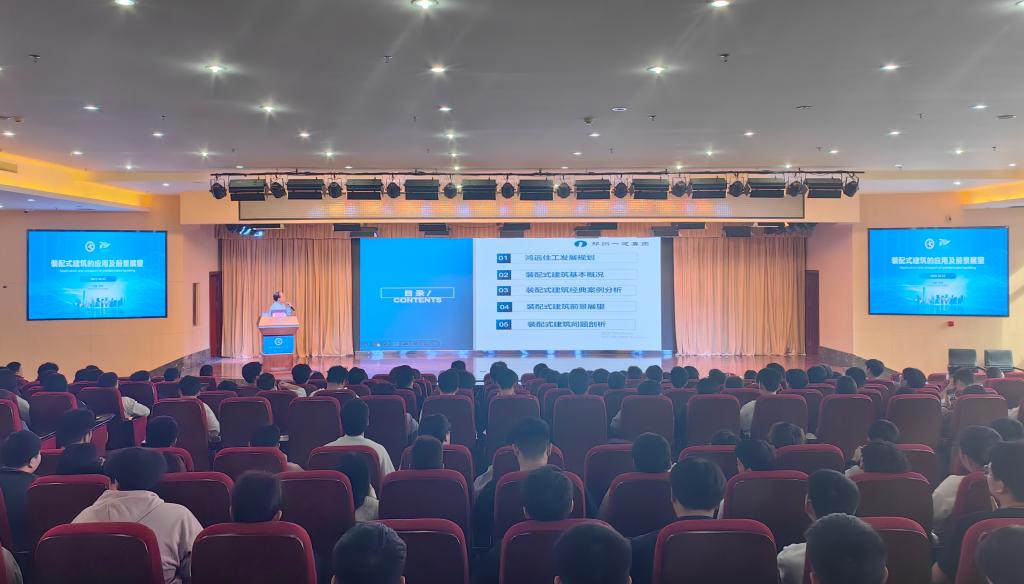为庆祝建校70周年,10月23日下午,由建筑工程系、科研外事处主办的“装配式建筑的应用及前景展望”学术讲座在图书馆二楼报告厅举行。本次讲座邀请河南鸿远住宅工业化科技有限公司副总经理史京京主讲,系部全体教师、建筑工程技术、工程造价、建筑装饰工程技术、智能建造技术专业的共300余名师生聆听。