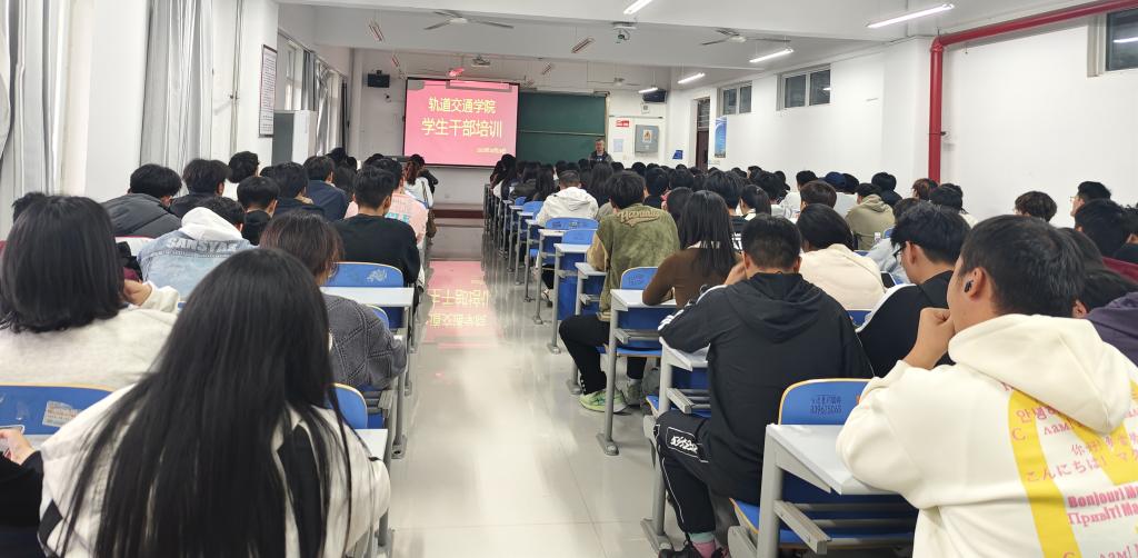 为进一步加强学生干部队伍建设,提高学生干部整体素质,增强学生管理队伍凝聚力、战斗力,10月17日至10月20日,轨道交通学院在5B205教室组织开展学生干部培训,轨道交通学院学院学生会全体成员、班级学生干部参加培训,由轨道交通学院学管办老师主讲。