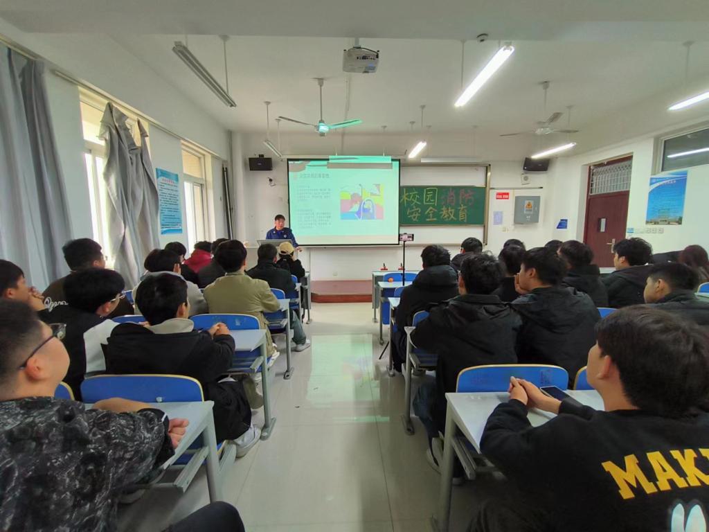 为强化校园消防安全教育工作,11月15日下午,轨道交通学院通过线下参与和线上直播相结合的方式,开展了校园消防安全教育暨消防安全演练活动,学院全体师生参加活动,轨道机电21303班学生余翔为大家普及消防常识。