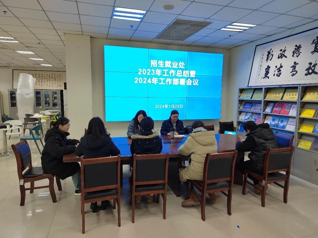 1月25日上午,招生就业处在招生就业服务大厅组织全体人员召开2023年工作总结暨2024年工作部署会议,招生就业处处长郭强主持会议。