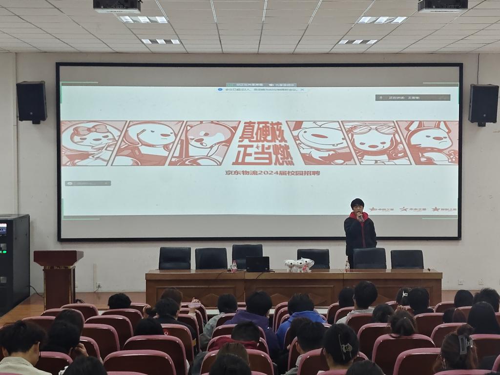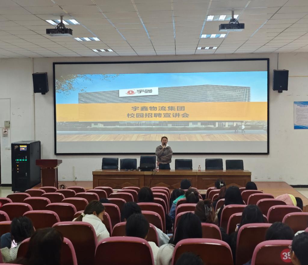 近日,物流学院邀请浙江京鸿供应链管理有限公司人资总监宋鹏,浙江心怡供应链管理有限公司人资经理贾亚帅,河南宇鑫物流集团有限公司人资经理张雨宾在物流学院报告厅举行招聘宣讲会。物流学院全体学生通过线上和线下的方式参加宣讲会。会议旨在共研物流领域的数智化发展趋势,并为学生成长搭建高效精准的求职平台。