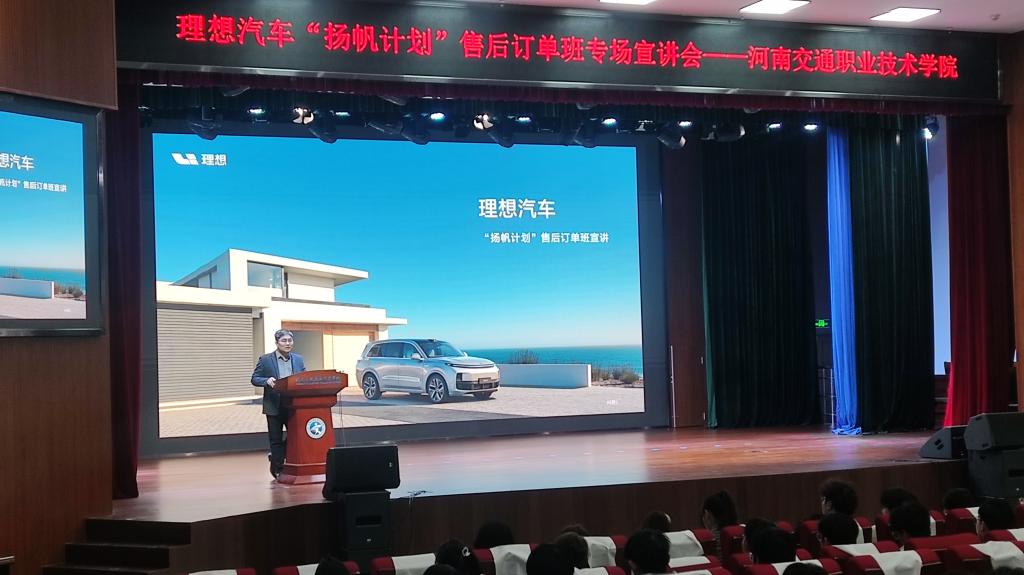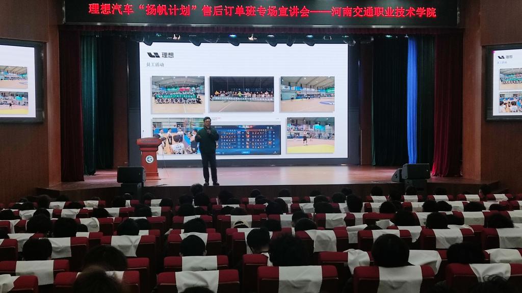 3月20日下午,汽车学院在航海路校区举行理想汽车“扬帆计划”订单班宣讲会。理想汽车校企合作负责人郭剑鑫,新能源汽车专业230名学生参加宣讲会。汽车学院党总支书记轩照振出席会议并致辞。