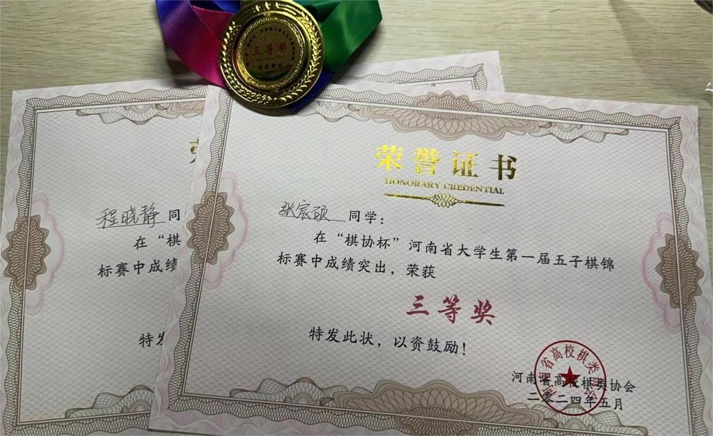 校团委翰轩棋社派出由刘鑫、张宸硕、王硕、程晓静组成的队伍代表学校参赛。经过7轮角逐,刘鑫以7局完胜获得个人一等奖和文化宣传大使称号,张宸硕、程晓静分获个人三等奖,由于参赛选手的出色表现,学校获得优秀组织奖。