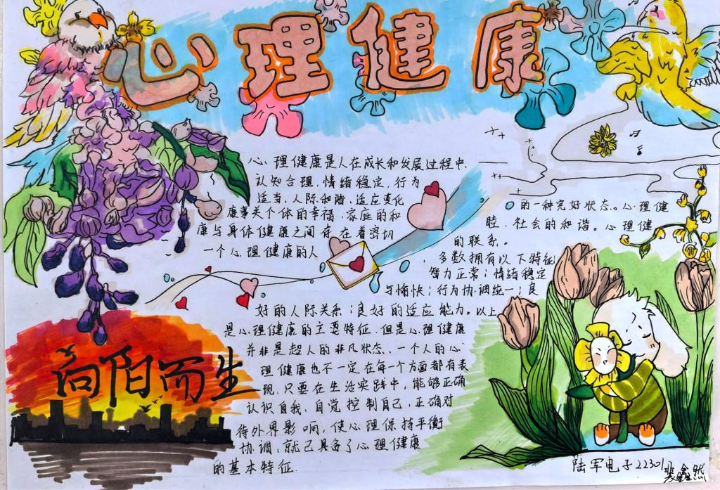 活动期间,士官学院举办了“多彩手抄报活动”,同学们将有关心理健康的知识、技巧和故事,通过手抄报的形式生动形象的展示出来,有的同学绘制了色彩斑斓的插图,有的同学书写了激昂心灵的文章,大家利用独特的创意和多彩的图画,手绘出五彩斑斓的世界,将心理健康的理念传递出去。精彩的作品引来无数师生驻足观看,分享讨论,在相互交流中激发大家积极关注自身心理健康的意识和行动,共同关爱心灵成长,呵护心理健康。