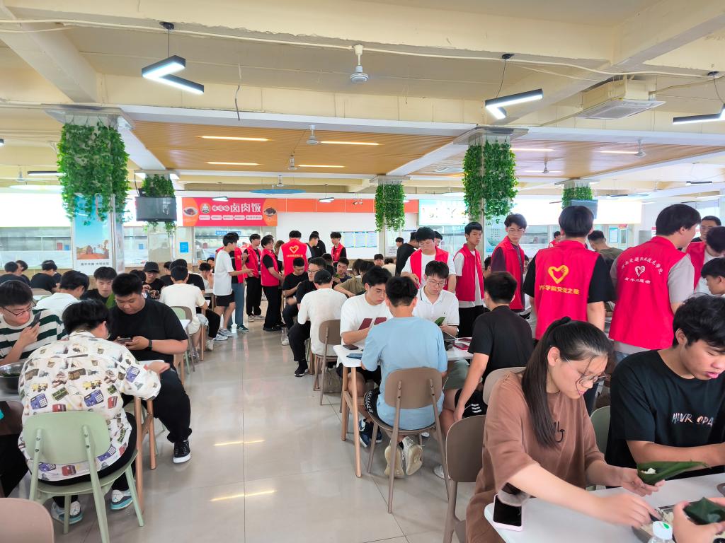 6月5日,汽车学院在航海路校区二楼餐厅开展以“仲夏萦香,欢粽时光”为主题的端午节特别活动,部分师生代表与食堂员工共200余人参加活动。