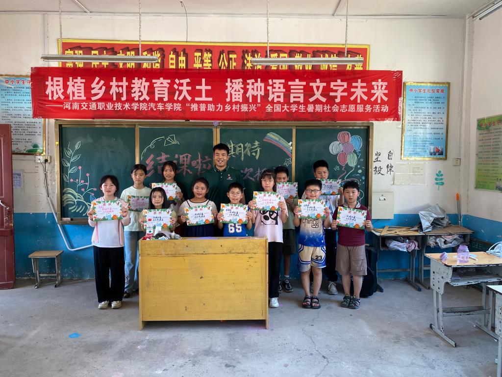 为积极响应党的二十大关于“加大国家通用语言文字推广力度”的决策部署,贯彻落实习近平总书记关于教育的重要论述和关于语言文字的重要指示批示精神,切实增强新时代大学生社会实践能力,为推广国家通用语言文字贡献青春力量,助力乡村振兴。7月中旬以来,汽车学院“交息相连,声生不息”实践团赴信阳市息县东岳镇,开展了为期两周的“推普助力乡村振兴”社会实践志愿服务活动。