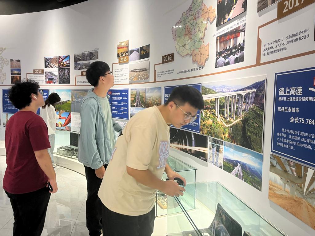学生们先后参观了建筑工程系实训中心、高速公路科普馆、高速公路道桥仿真实训场、隧道综合实训场,学习了河南省高速公路建设规划纪实,体验了公路隧道建设绿色施工场景等。同学们对实习内容展现出了浓厚的兴趣,与讲解老师积极交流,参观学习氛围浓厚。