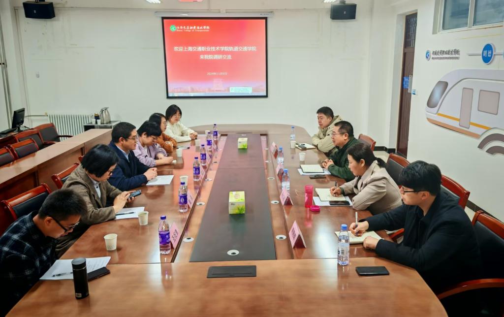 11月9日上午,上海交通职业技术学院轨道交通学院机电教研室主任梁世升一行6人到轨道交通学院调研交流。轨道交通学院副院长闫洪林、城市轨道交通机电技术教研室主任等部分骨干教师参加交流活动。