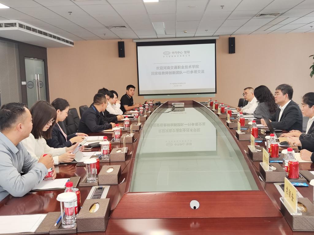 在中国汽车技术研究中心,团队参观了西青智能网联封闭测试场和新能源汽车智能网联汽车国家级实验室。座谈会上,双方就智能驾驶系统的安全性、网络化系统的稳定性和新能源汽车的续航能力等技术难题展开深入讨论,围绕“职教出海”进行交流,双方一致认为应通过国际化视野,推动智能网联汽车领域的技术创新与人才培养模式走向全球。双方还就教材共建和课题合作方向达成共识,强调根据行业发展动态和市场需求灵活调整课程设置和教材内容,确保教育体系与时俱进,培养符合未来产业需求的高素质人才。此次调研为双方共建“河南省智能网联汽车测试技术工程研究中心”的建设提供了更多思路,进一步促进了校企合作与技术创新。