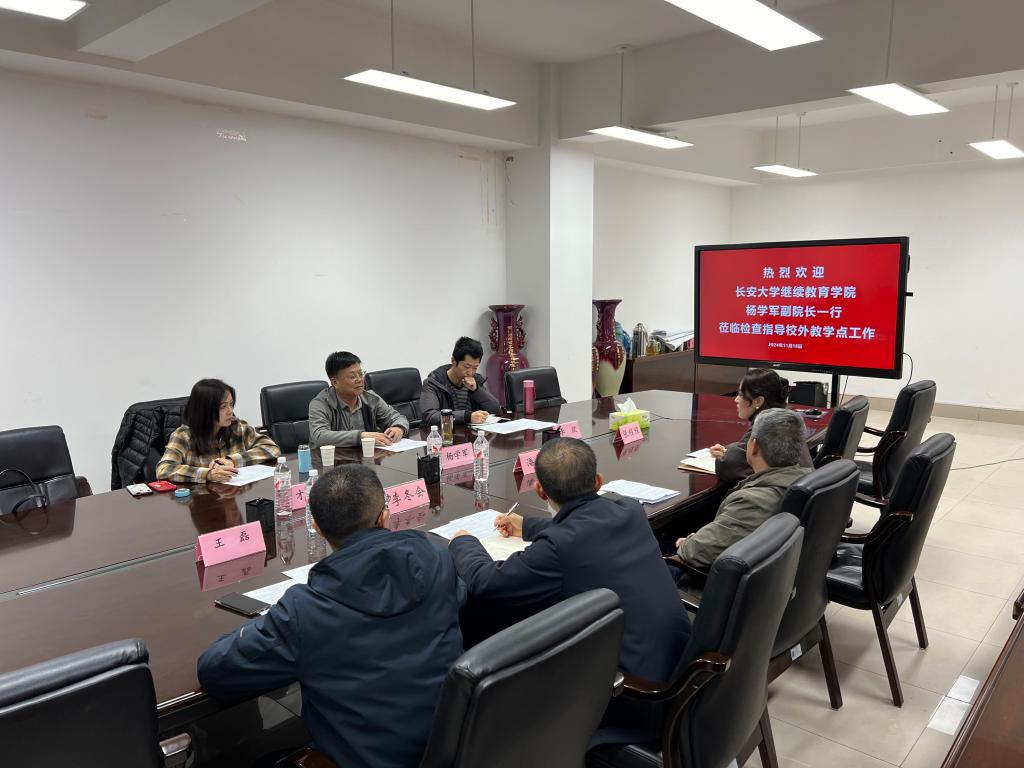 11月18日,长安大学继续教育学院副院长杨学军一行3人,到我校高等学历继续教育校外教学点实地检查。继续教育学院副院长潘威及各相关人员参加迎检。
