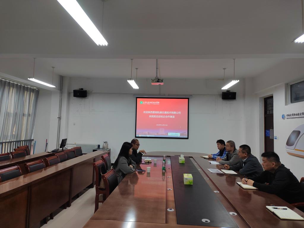 11月22日下午,陕西雷驰轨道交通技术有限公司副总经理袁玉莹、培训部部长李志伟一行2人赴我校轨道交通学院,就校企合作事宜开展洽谈交流。轨道交通学院副院长闫洪林等相关负责同志参加座谈。
