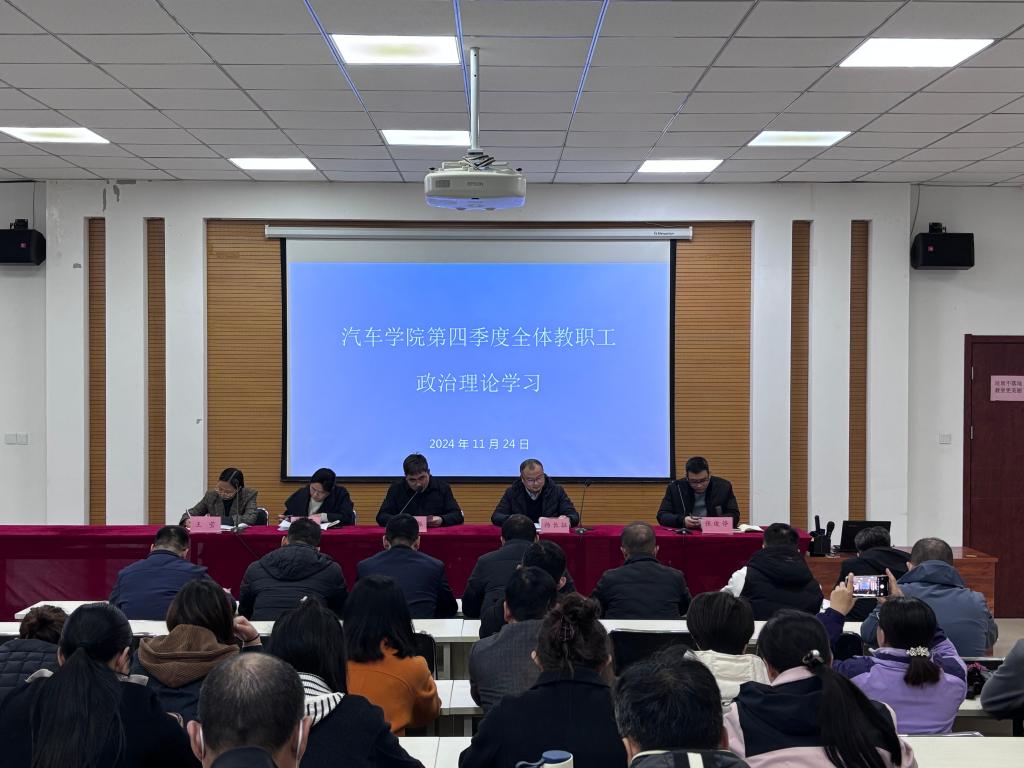 11月24日下午,汽车学院在航海路校区召开了第四季度全体教职工政治理论学习会议。汽车学院党总支书记轩照振、副院长杨长征及汽车学院全体领导班子成员出席会议,汽车学院全体教职工参加会议。会议由轩照振主持。