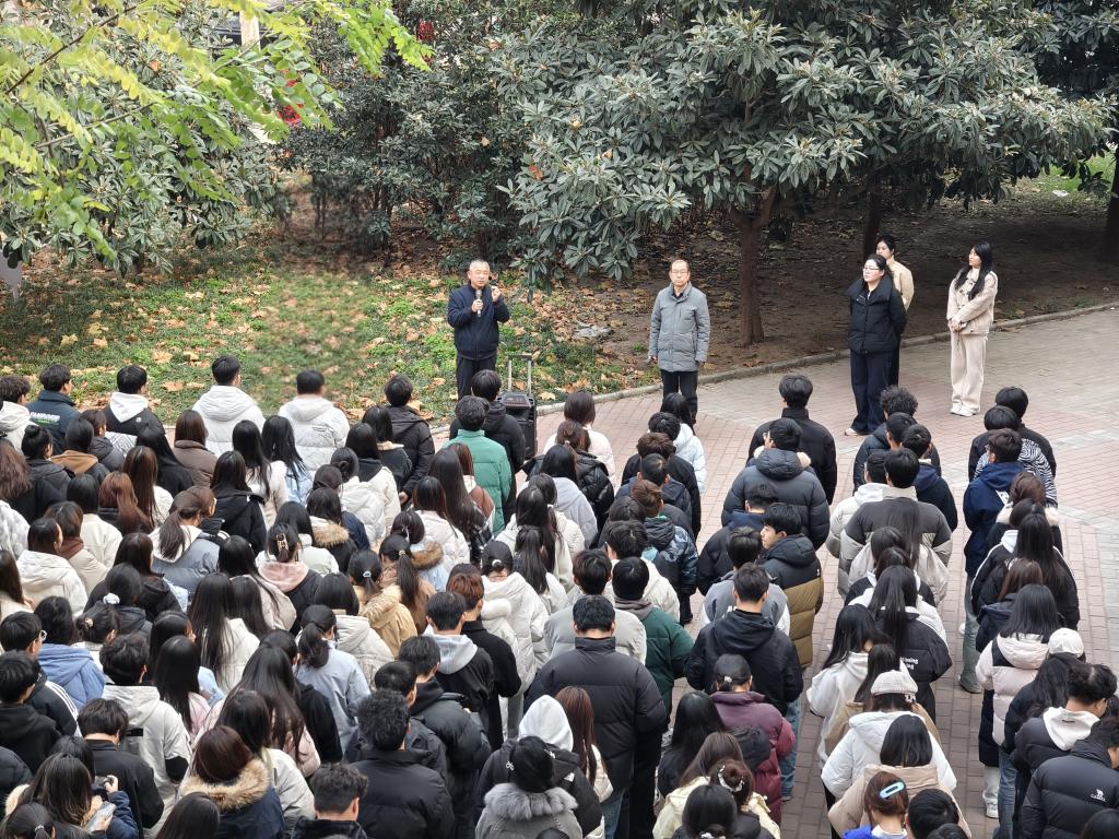 演练前,商务旅游系邀请保卫处相关负责同志为全体师生进行现场指导,并详细讲解火灾逃生的规范操作与注意事项。警报声响起后,师生迅速响应,按照预先规划的疏散路线有序撤离,整个过程既紧张高效,又准确无误。商务旅游系党总支书记陈振锋在总结活动时强调,消防安全是校园安全的重要组成部分,提醒师生要时刻保持安全意识。