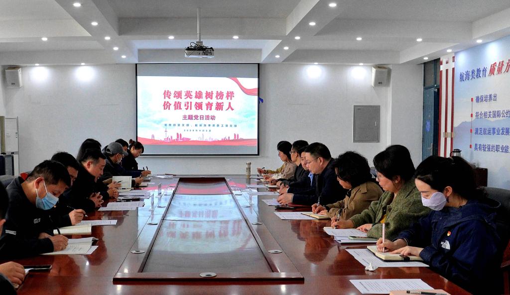 4月2日下午,党委宣传部党支部、航运海事系教工党支部在航运海事系党员之家,开展“传颂英雄树榜样 价值引领育新人”主题党日活动。两支部全体党员参加,航运海事系主任岳现杰主持。