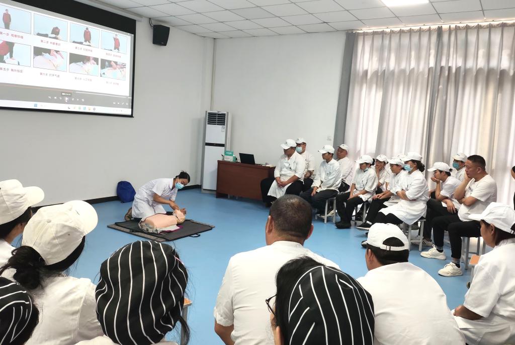 5月8日、13日,后勤服务集团校医院先后联合学生工作处、河南交院工程技术集团有限公司,对学校餐厅职工、物业职工及宿管人员,开展了以“矢志人道 携手同行”为题的系列应急救护培训活动,以实际行动筑牢校园安全防线。
