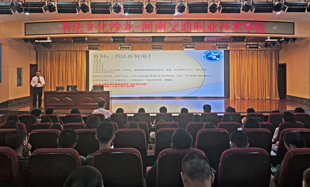 5月28日下午6时,河南交通职业技术学院东校区图书馆二楼报告厅内座无虚席。由校团委主办的“书法文化沙龙”活动在此精彩开讲,特邀中国书法家协会会员李建民教授主讲。
